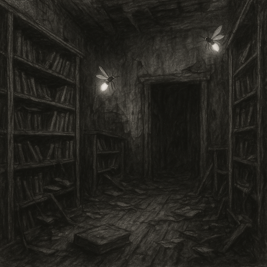 Sus infinitas estanterías se componían con suspiros y viejas promesas, cubiertas de polvo de estrellas brillando en la oscuridad con tímida esperanza.